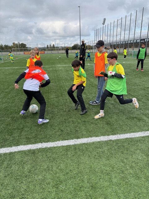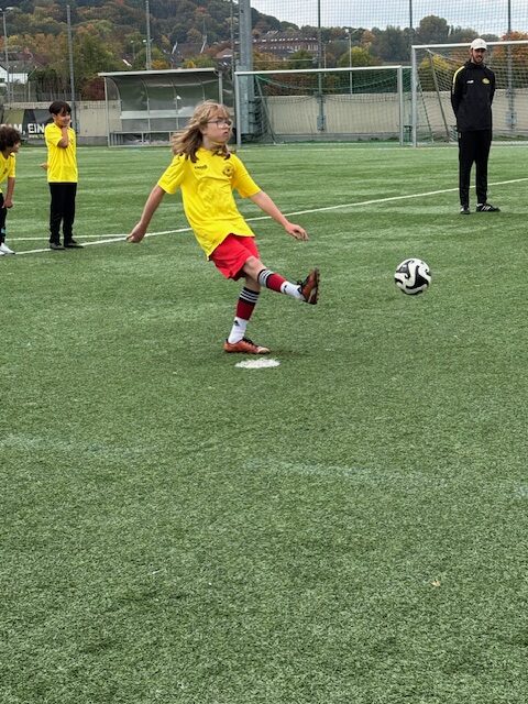Und so waren auch alle mit Begeisterung bei der Sache. Dies war nicht zuletzt den vier Akademietrainern zu verdanken, die selbst mit viel Freude, hohem Einfühlungsvermögen und Engagement die Kinder anleiteten und betreuten. Sie schafften es, alle einzubinden – egal ob schon Vorerfahrungen im Fußballspielen vorhanden waren oder nicht. Alle Fortschritte, Treffer und hart umkämpften Siege wurden gemeinsam bejubelt und Misserfolge weggesteckt.
