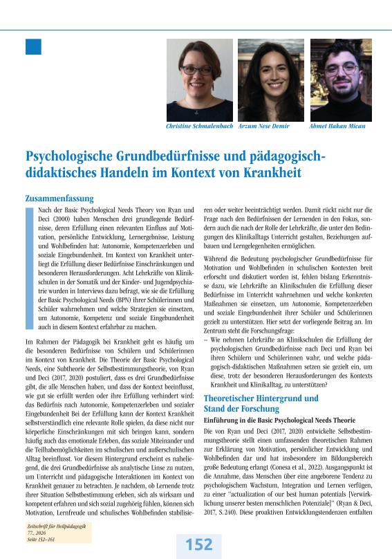 Psychologische Grundbedürfnisse und pädagogisch-didaktisches Handeln im Kontext von Krankheit