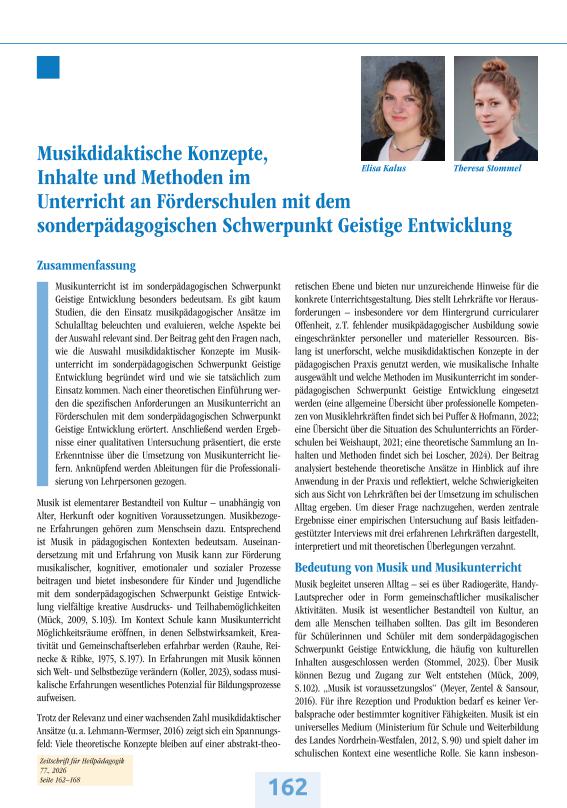 Musikdidaktische Konzepte, Inhalte und Methoden im Unterricht an Förderschulen mit dem sonderpädagogischen Schwerpunkt Geistige Entwicklung