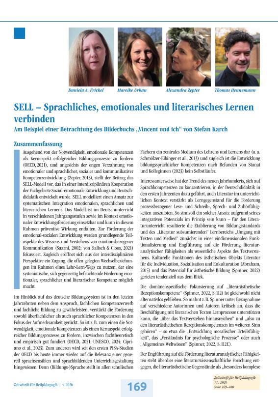 SELL – Sprachliches, emotionales und literarisches Lernen verbinden Am Beispiel einer Betrachtung des Bilderbuchs „Vincent und ich“ von Stefan Karch