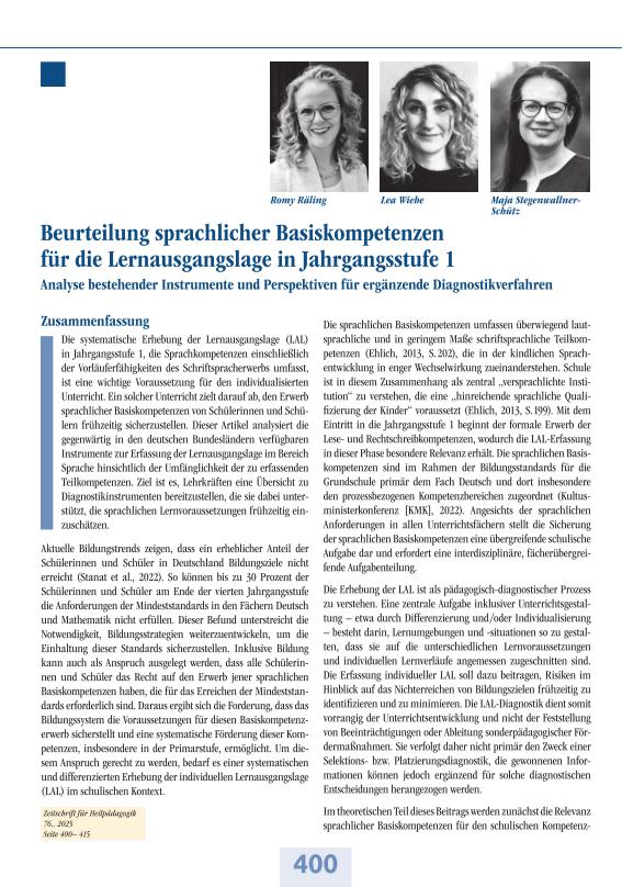 Beurteilung sprachlicher Basiskompetenzen für die Lernausgangslage in Jahrgangsstufe 1 Analyse bestehender Instrumente und Perspektiven für ergänzende Diagnostikverfahren